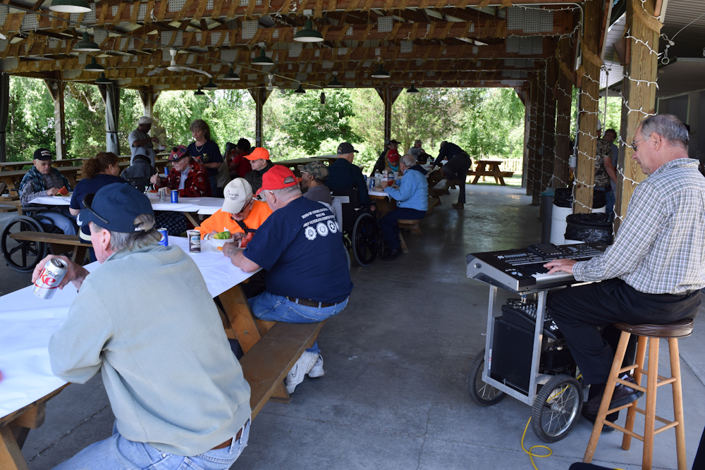 Once the fishing was over, everyone made their way back to the Lodge pavilion for lunch where Charlie, Larry, Skip and Ida had laid on a barbecue. John Deane entertained us with a selection of tunes from our younger days.