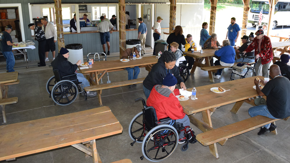 These Veterans (many confined to wheelchairs ) were given the opportunity to leave the hospital environment and spend the day in the sunshine, enjoying a beautiful day with our members.