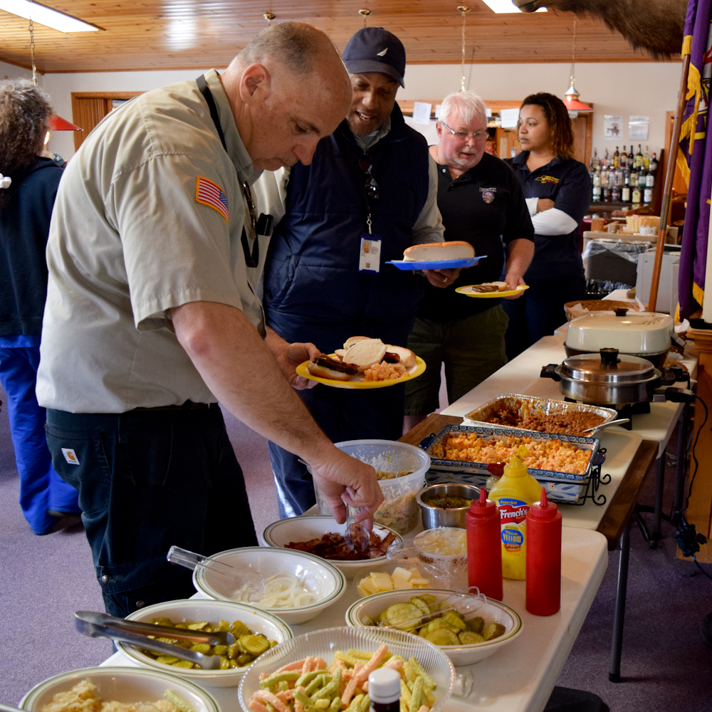 At lunchtime, our guests were served a barbecue-style lunch of burgers and hot dogs followed by ice cream for dessert. After lunch, they gathered for a group photo before boarding the buses and heading back to Albany.